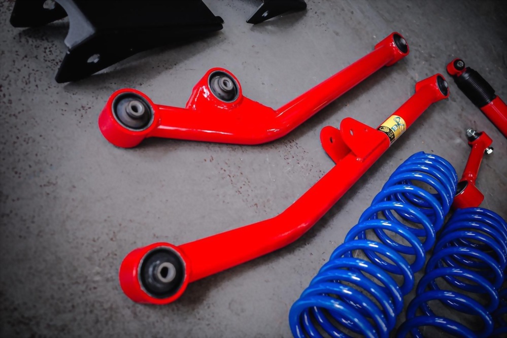 透過增加後頃角,為舉升後的Jimny提供更好的底盤角度,使轉向手感進一步提升,並採用特殊襯套,一般道路擁有不死硬的操控路感,越野時可提供相較偏心鐵套20%以上的落差表現。